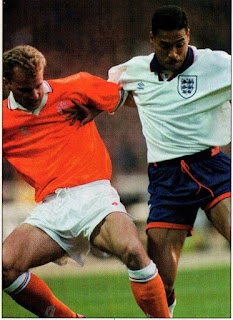 Photo From: Soccer International,Volume 4, Issue 8, August 1993 (Dennis Bergkamp in addition to Des Walker, Apr 28, 1993, World Cup Qualifier, England 2-Holland 2) |